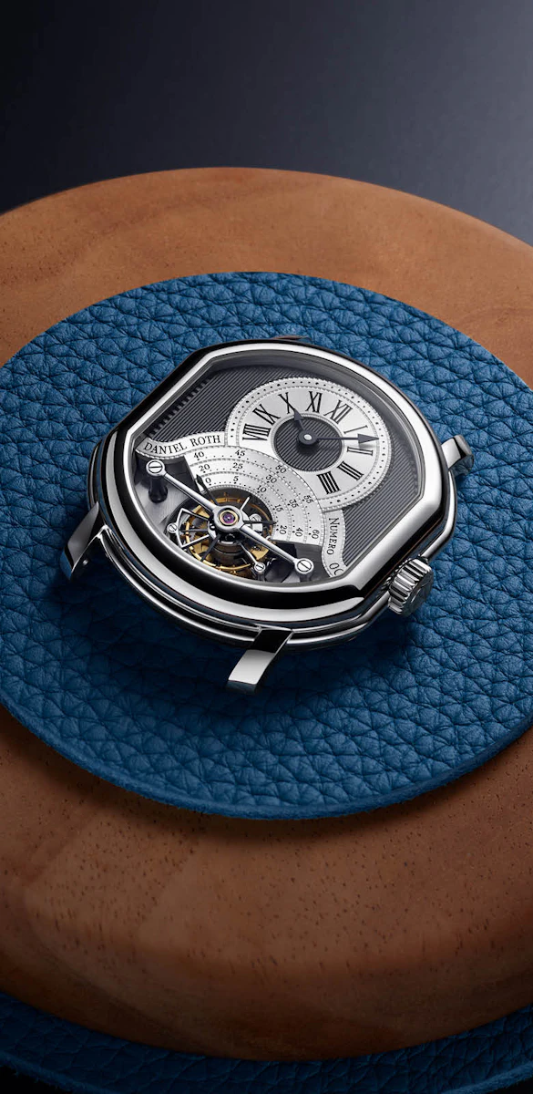 The chapter ring in 925 sterling silver reflects the refined aesthetic of the Maison. Completing the composition, the signature “moustaches” carry the DANIEL ROTH name and the individual watch number, subtle details that embody the dedication to timeless craftsmanship.