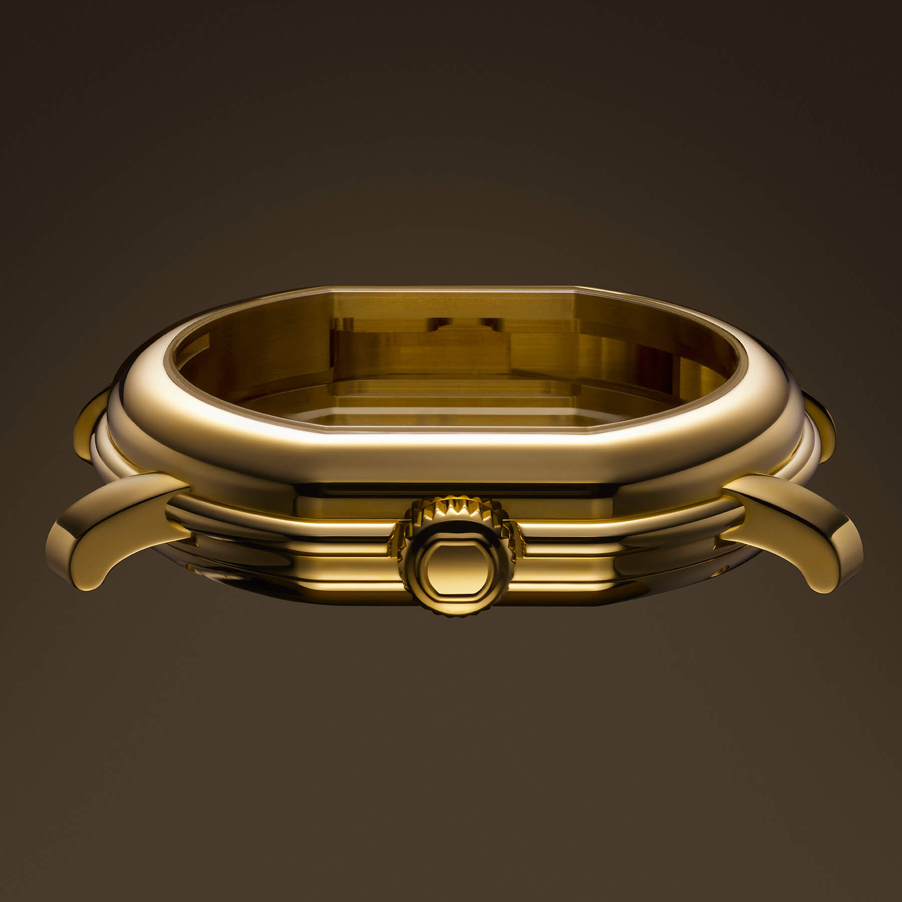 Formed from a plate of solid yellow gold and manufactured in collaboration with Kari Voutilainen's workshop, the dial is decorated with Clou de Paris Guilloche just as the original was.
